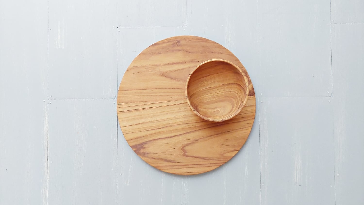 ランチセット(フラットプレート27cm&ボウル)/自然 無垢 チーク 木製 オシャレ カフェ ナチュラル ケーキ皿 パン皿 北欧 トレイ ワンプレート 平皿 ) | TPC~Table Planning Chouette~