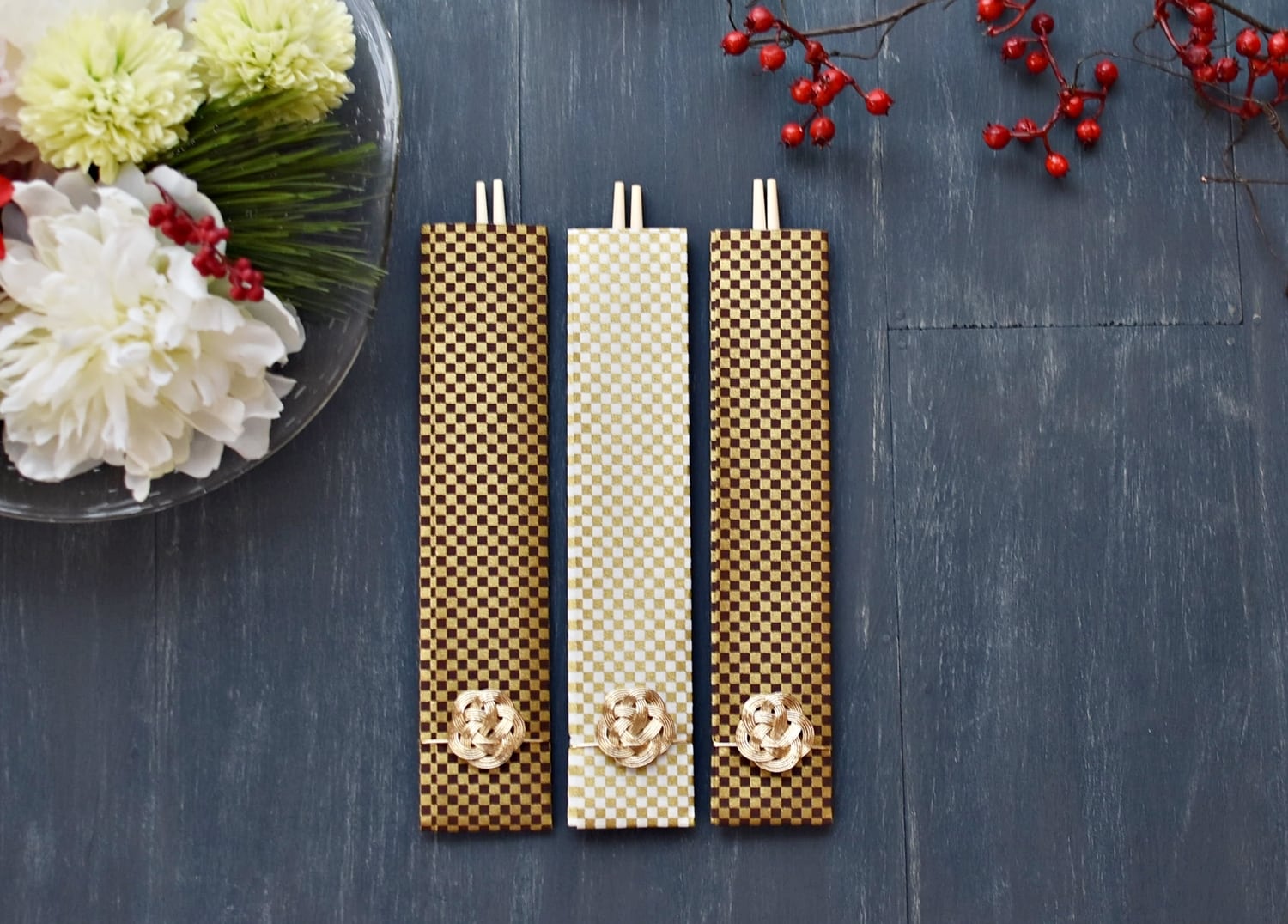 お正月らしさも出しつつ、洋食器にも合う箸袋になってます。